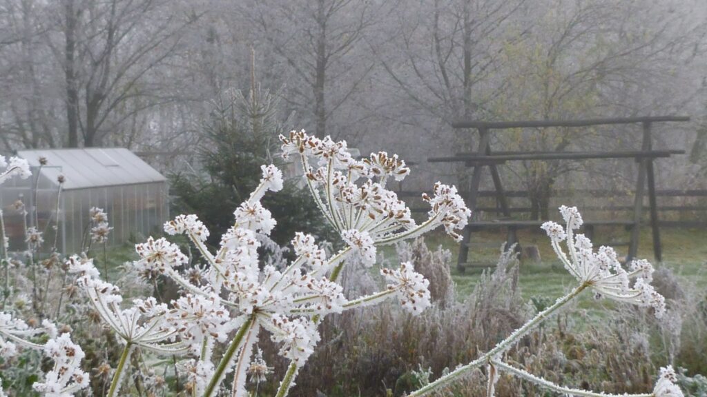 Vypadá to, že prázdné záhony jen odpočívají, ale pod vrstvou organické hmoty (zelené hnojení nebo listí apod.) pro nás bude celou zimu pracovat armáda neviditelných pomocníků – všech drobných živáčků jako jsou houby, mikrobi a ostatní bezobratlí rozkládající organiku do podoby přijatelné pro rostliny. Příroda a zahrady se ukládají ke spánku – hrabeme listí a děláme z něj peřinu záhonům nebo někde v koutě zahrady spolu s větvemi necháme hromádku pro ježka a jiná malá zvířata. Odkvetlé trvalky a stonky trav nestříháme, můžeme se těšit na jejich ojíněný kouzelný vzhled a taky poslouží jako úkryt pro hmyz. Stříháme až na jaře, kdy by odumřelá hmota bránila v novém růstu.
