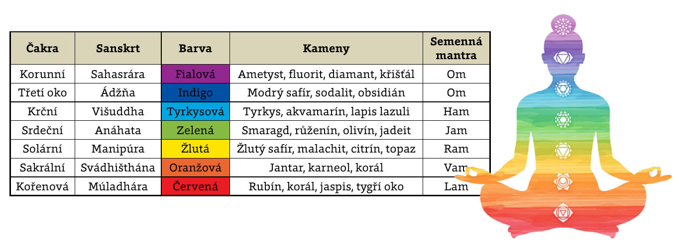 Pro zimní období je vhodné se vrátit dovnitř, nejen dovnitř do domu, ale také dovnitř do sebe. K sobě. V tichu se nám může totiž podařit zaslechnout hlas vlastní duše. A tak v tabulce najdete i mantru pro danou čakru, protože stejně jako se v zimě zaměřujeme na kořeny, které nás uzemňují, můžeme se více naladit i na zvuky. Mantry jednoslovné, takzvané semenné, jsou tak krátké jako je jedno semínko.