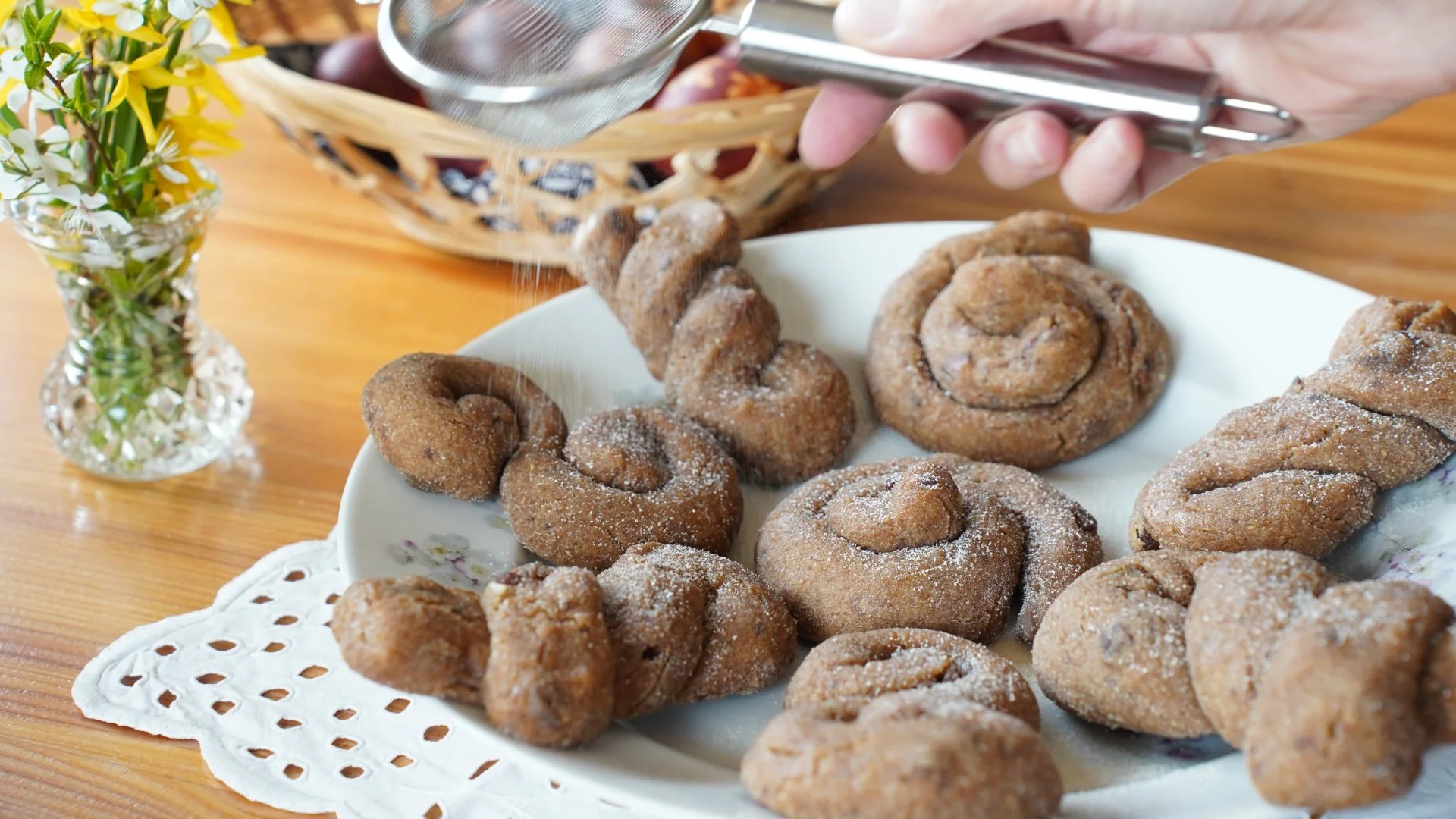 Na Velký pátek se dělávaly tradiční jidáše. Jidášky rády dělají děti, jednoduše motají esíčka, šnečky a smyčky. Ty naše jsou bez cukru, mléka a vajec. A velmi dobré!