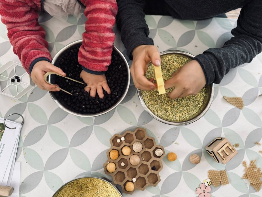 kompost. Nabízí se nejrůznější možnosti tvořivých her se dřevem a dalšími přírodninami.